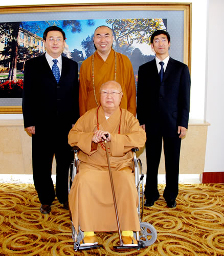 仪式上,我校党委书记王山与永惺长老共同为佛学研究中心揭牌;校长程伟,香港西方寺法主和尚、香港菩提学会会长永惺长老分别致辞;辽宁省政协委员、香港西方寺住持、香港菩提学会副会长宽运法师在会上讲话;程伟校长、宽运法师、朝阳市政府副市长高炜共同在签字仪式上签字;